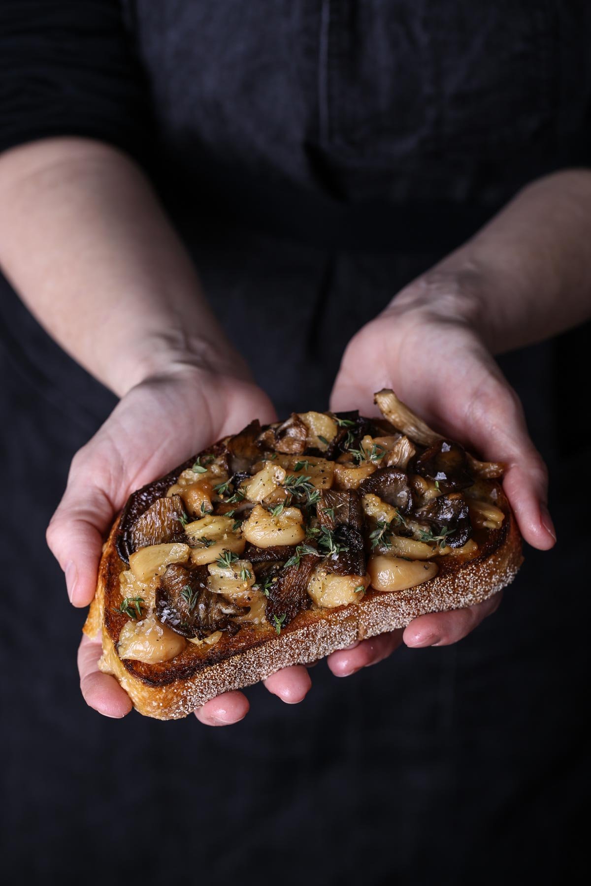 Garnish with fresh thyme leaves. Finish with a generous sprinkle of flaky sea salt, crucial for enhancing the garlic’s sweetness and the mushroom’s umami flavor.