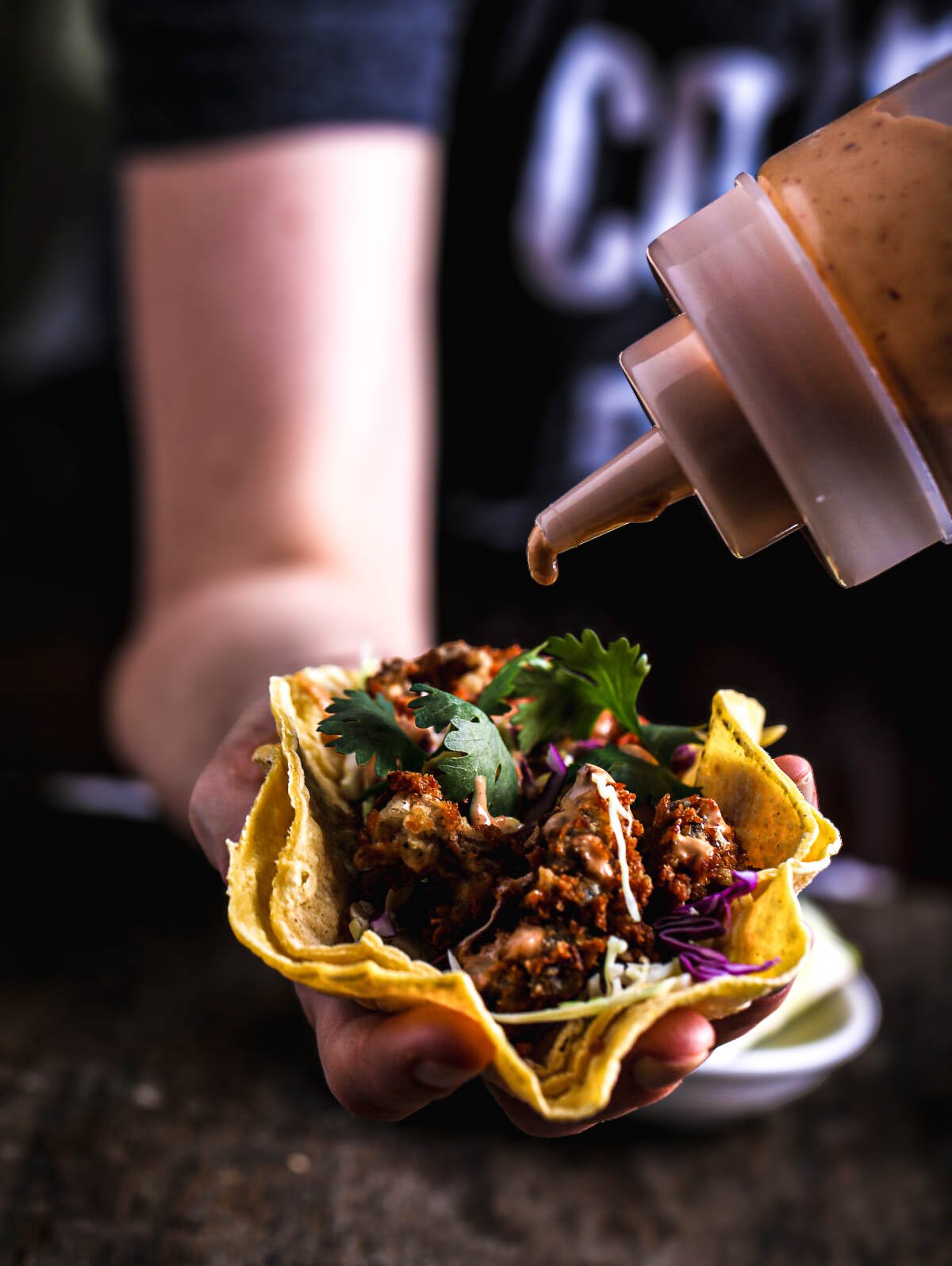 - Fill each tortilla with the cabbage, crispy mushrooms, cilantro, and a generous drizzle of the chipotle-lime sauce.