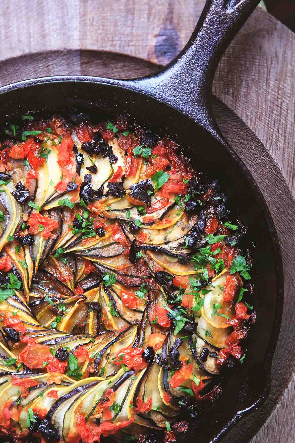 - Serving tip: This layered ratatouille shines with a crusty baguette, a scoop of rice or couscous, or as a side next to creamy white beans or a swipe of vegan goat cheese.
