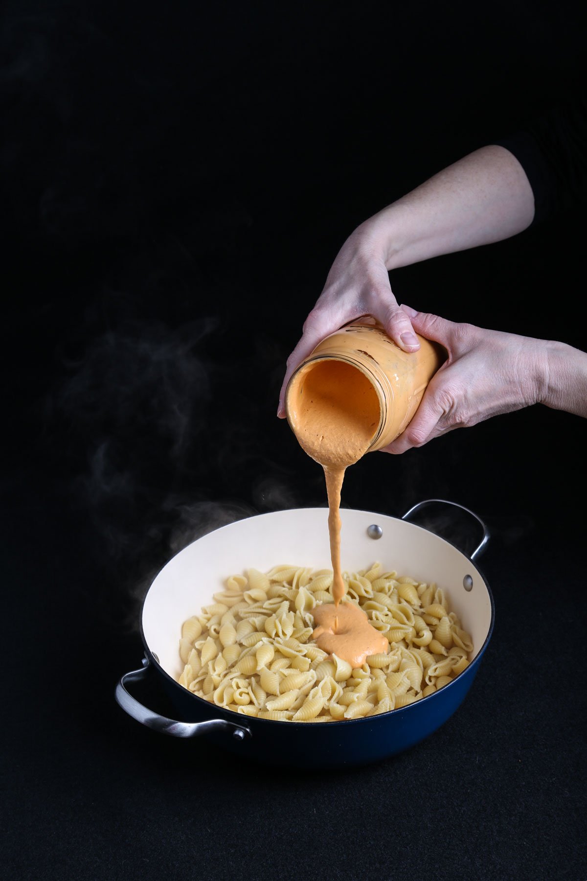 - Drain the pasta and mix it with the desired amount of roasted red pepper sauce, ensuring the pasta is evenly coated.