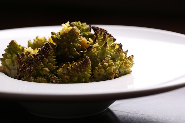 On this blog, I always try to make food look pretty after prep but, in this case, the romanesco is prettiest when left unprepped.